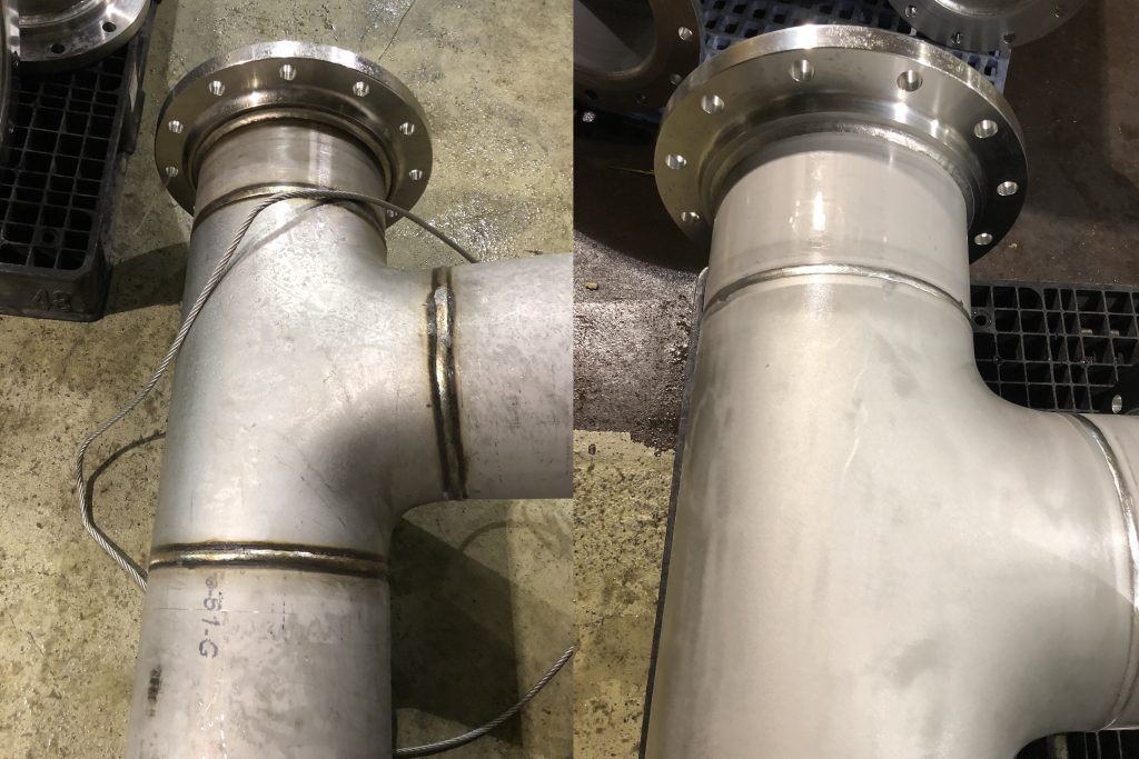 To fully restore the corrosion resistance of the affected area, the damaged surface layer—including both the oxide and the chromium-depleted zone—must be removed. While mechanical methods like grinding or abrasive blasting can achieve this, they often come with drawbacks. These methods can embed foreign particles, such as abrasives or iron contaminants, into the stainless steel surface, potentially leading to localized corrosion. In many cases, mechanical removal is also impractical for complex geometries or internal surfaces.